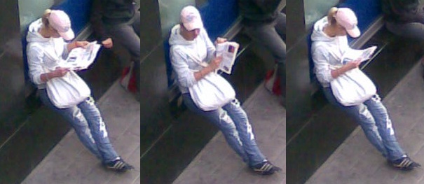 Nedávno jsem ji viděl a vyfotil. Pokud vím, už to poměrně dlouho nedělá, byla to asi jen měsíční epizodka. Návrat nelze vyloučit. Poznávací znamení je růžová kšiltovka a velká bílá kabelka, chodí tak pořád.