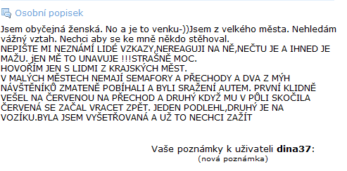 antitom píše:Profil této "amatérky" mě dneska docela pobavil, hlavně její podmínky http://www.amateri.cz/?a=profil&userid=1071936.